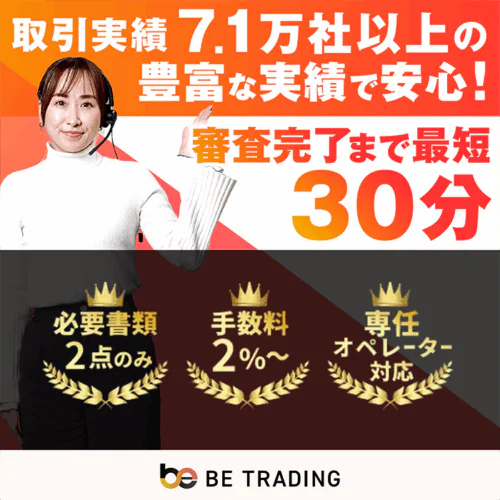 仕事柄外出していることが多いですが、面倒な書類の提出もなく、オンラインでスムーズに契約できて助かりました。ビートレーディングさんのおかげで資金繰りが安定してきたので、とても感謝しています。